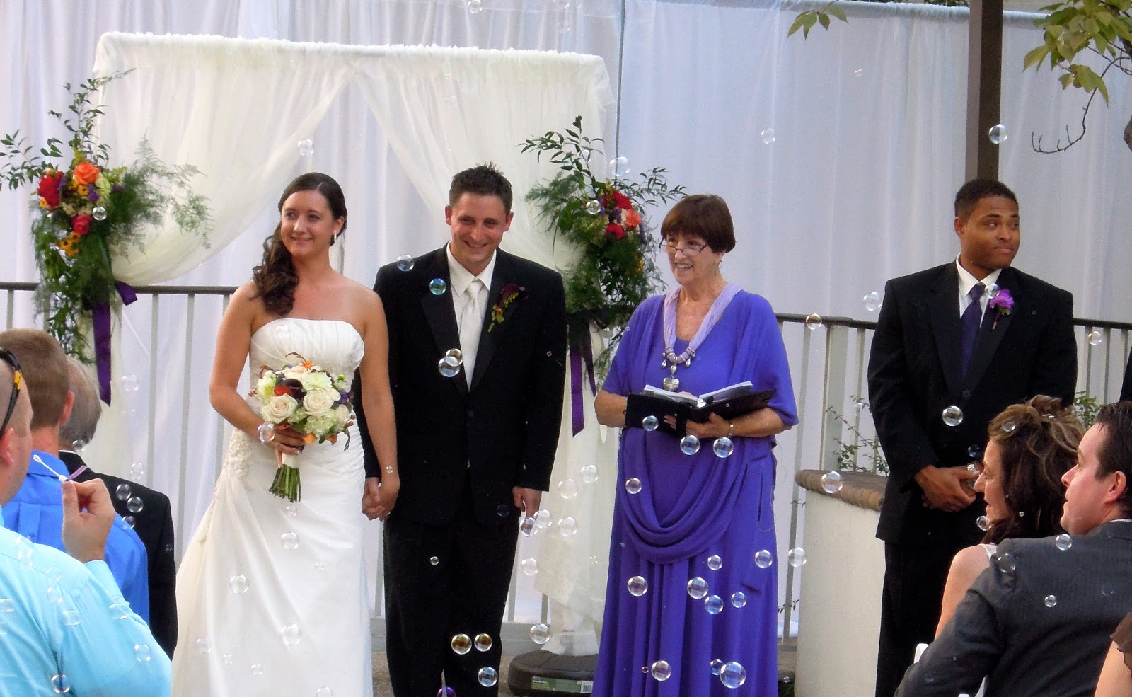 Time for the rings and vows. They chose rather long vows which they read from my book where they are printed facing them, not realizing that it is not always a piece of cake reading them during the actual ceremony.